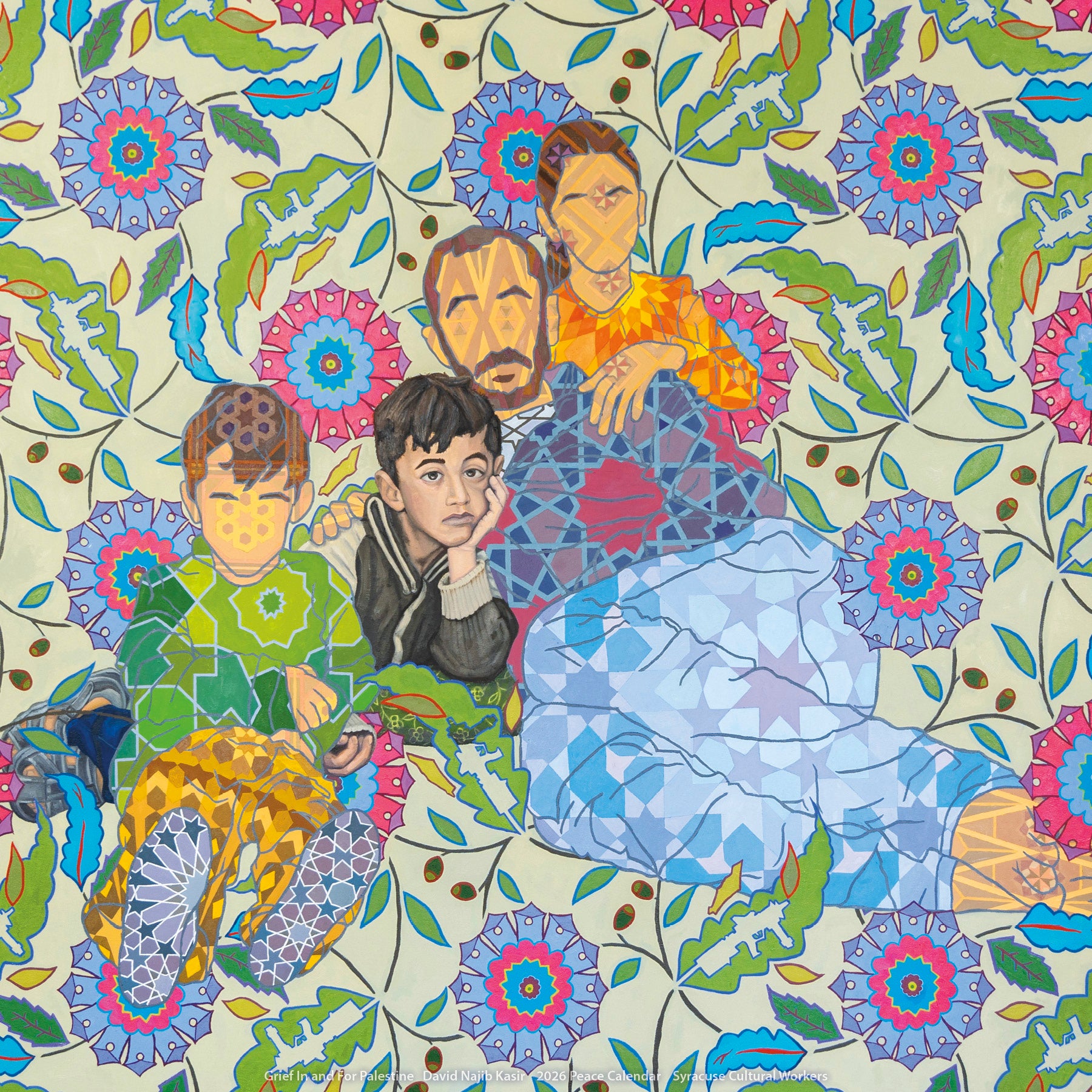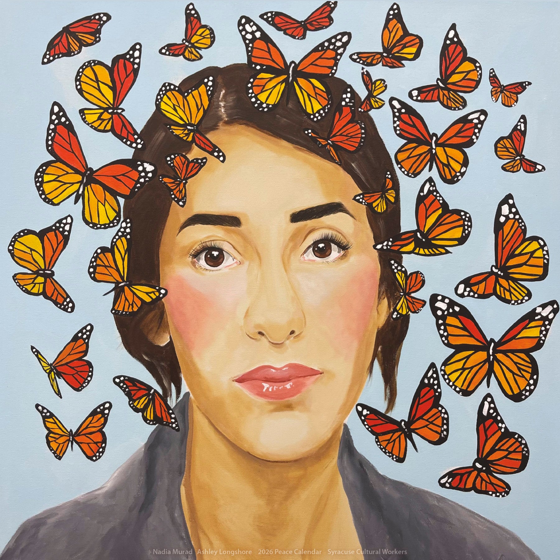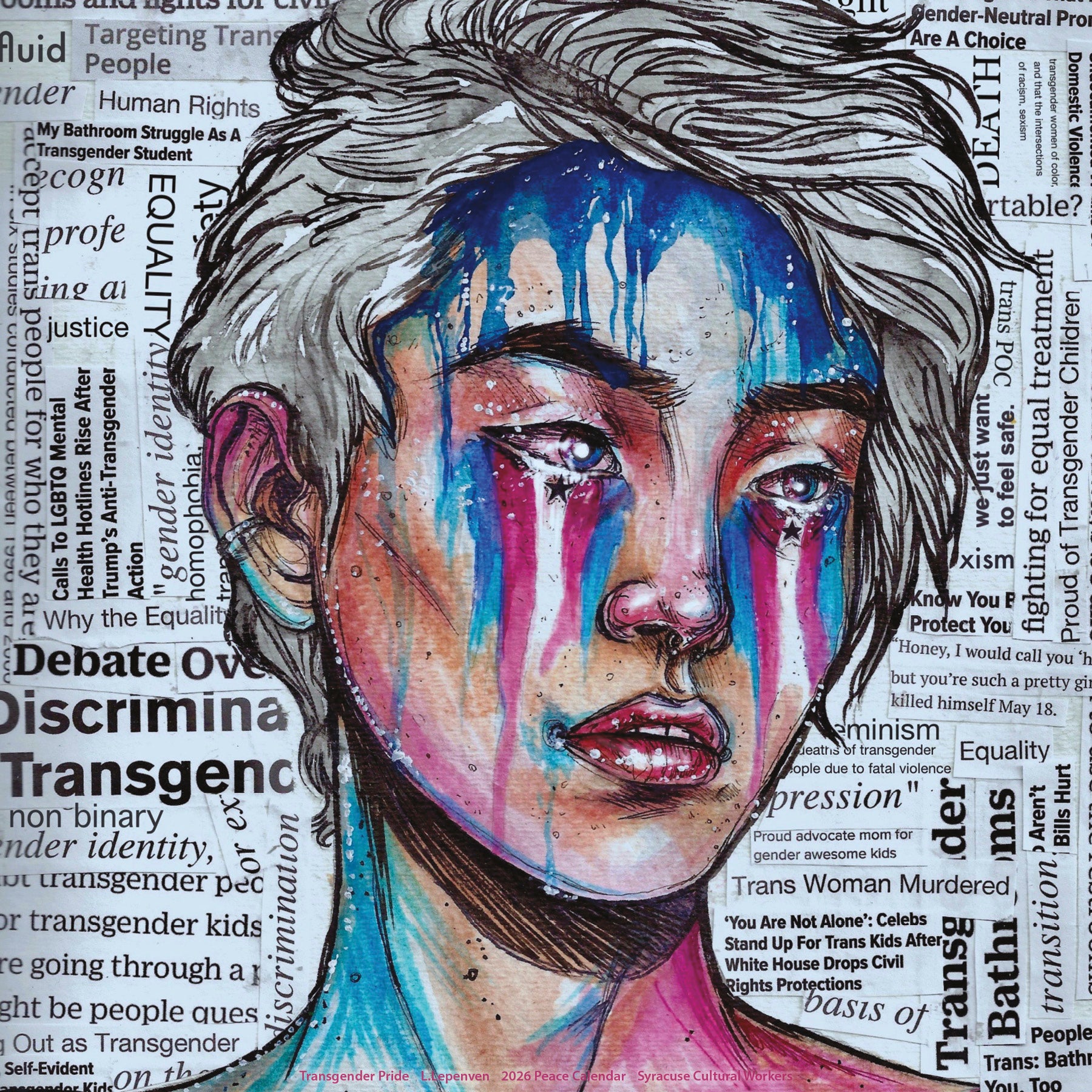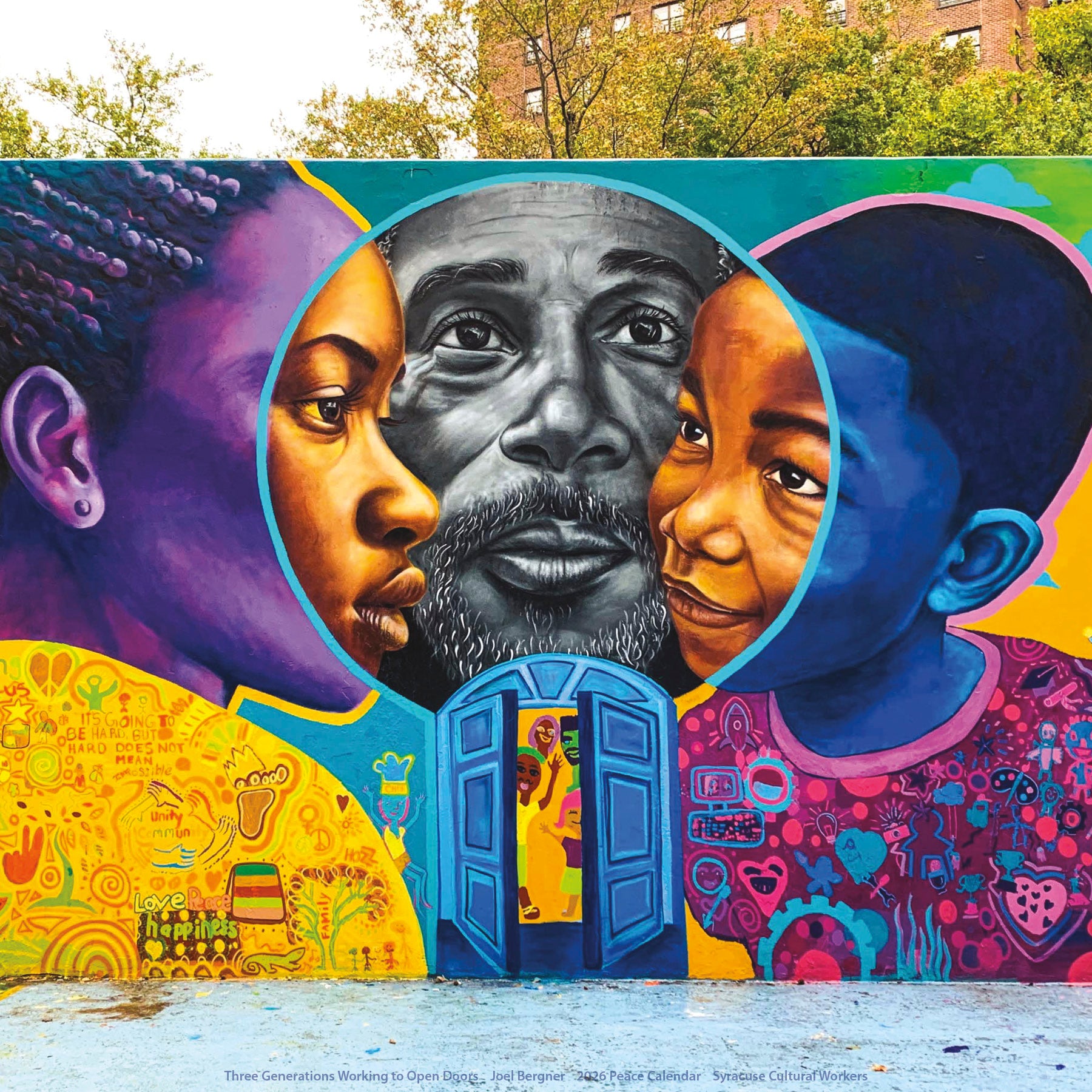 A full year of dynamic, uplfting artwork to sustain us through challenging times. The diverse array of media and styles – murals, painting, illustration, photography, and mixed media – will enrich your days throughout 2026. Dio Cramer's powerful cover art calls us to resist together to Hold Strong to our values.
