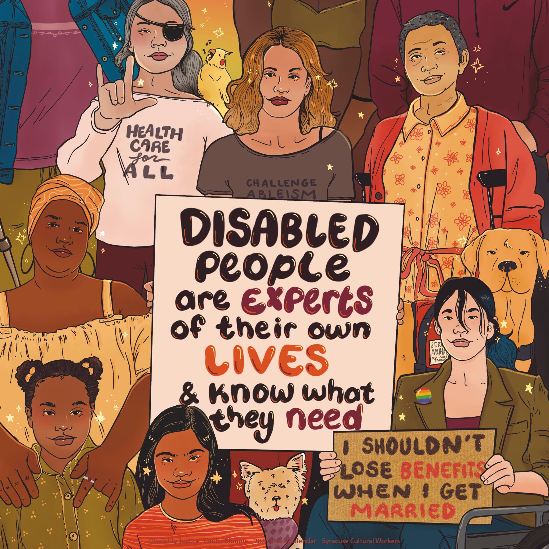 Decades of determined activism have created some of those necessary programs and services, but they now face massive changes, or outright elimination. This month’s art affirms the right to bodily autonomy, and raises other critical issues like sub-minimum wages and disability benefits. Moving forward, the disability community needs to continue taking action at the local, state and federal levels to advocate for their interests – voting, protesting and working alongside elected officials, so all voices are heard and necessary options and services are afforded to all.