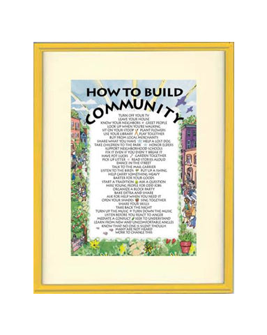 How To Build Community Text: Members SCW Community Artist: Karen Kerney, watercolor. SCW© 1998 Spanish and French versions available How to Build Community is now celebrating its 16th anniversary!!