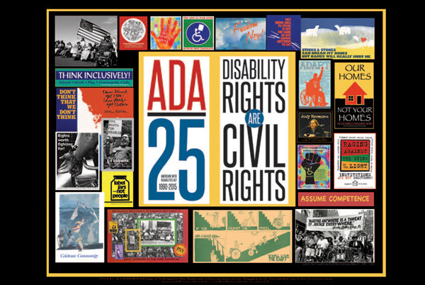 On July 26, 1990 the Americans with Disabilities Act (ADA) became US law, significantly increasing rights available to people with disabilities. SCW produced this postcard / poster in 2015 to honor the 25th Anniversary of the ADA.