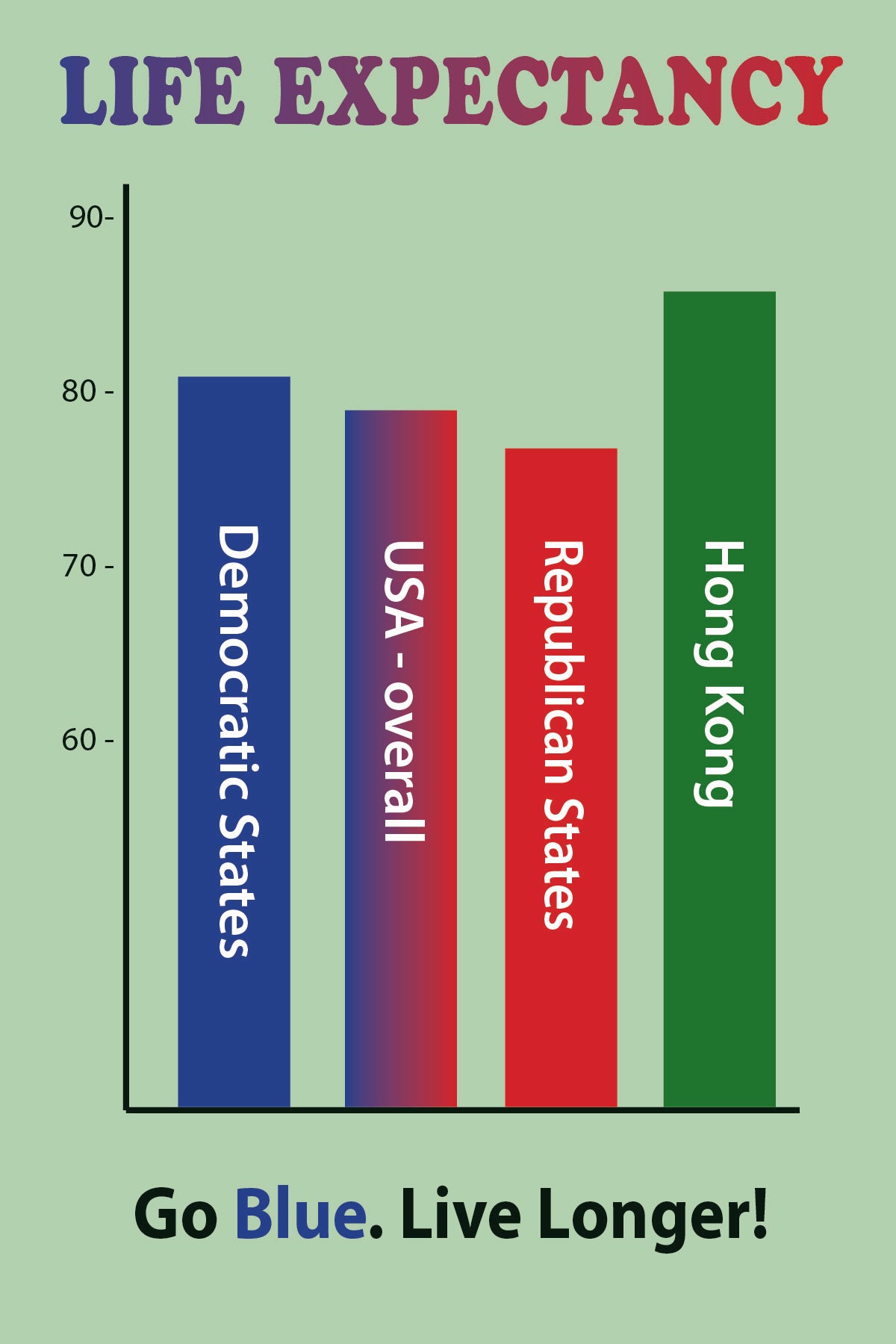 People in blue states live longer because of state policies that provide better healthcare, environmental protection, gun control, civil rights and other factors. Republican policies that favor the rich and corporations cause Americans to die younger in red states.
