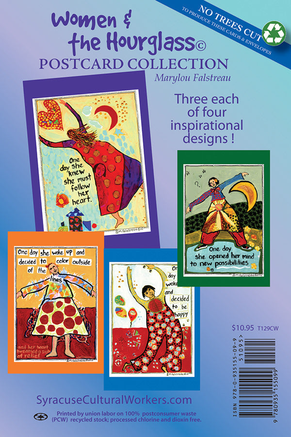 Inspiring artwork by Marylou Falstreau Three each of 4 designs. One day she woke up and decided to be happy (T130CW) One day she knew she must follow her heart (T131CW) One day she woke up and decided to color outside of the lines and her heart breathed a sigh of relief (T132CW) One day she opened her mind to new possibilities (T133CW)