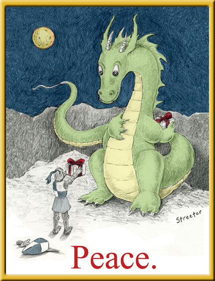 Recently a new mom came into our store and asked if this image, which was hanging in the window promoting holiday cards, was going to be a poster. We couldn’t resist! It’s a great kid’s room or elementary school poster. We all need gift-giving peaceful dragons in our lives!