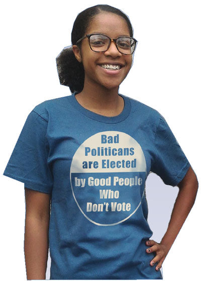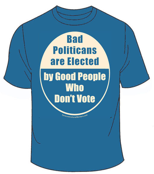 T-Shirt - Bad Politicans are Elected by Good People Who Don't Vote - Misspelled